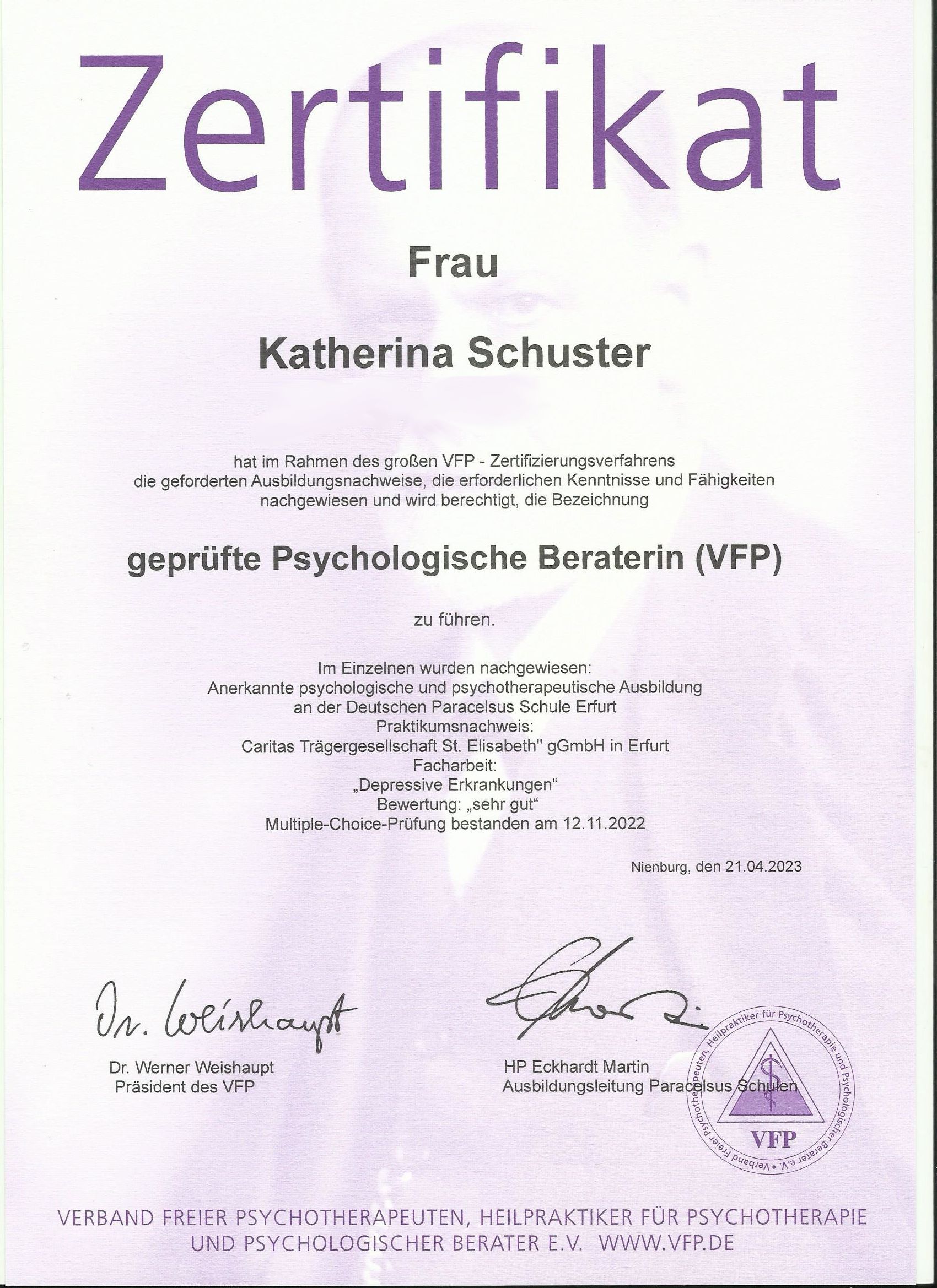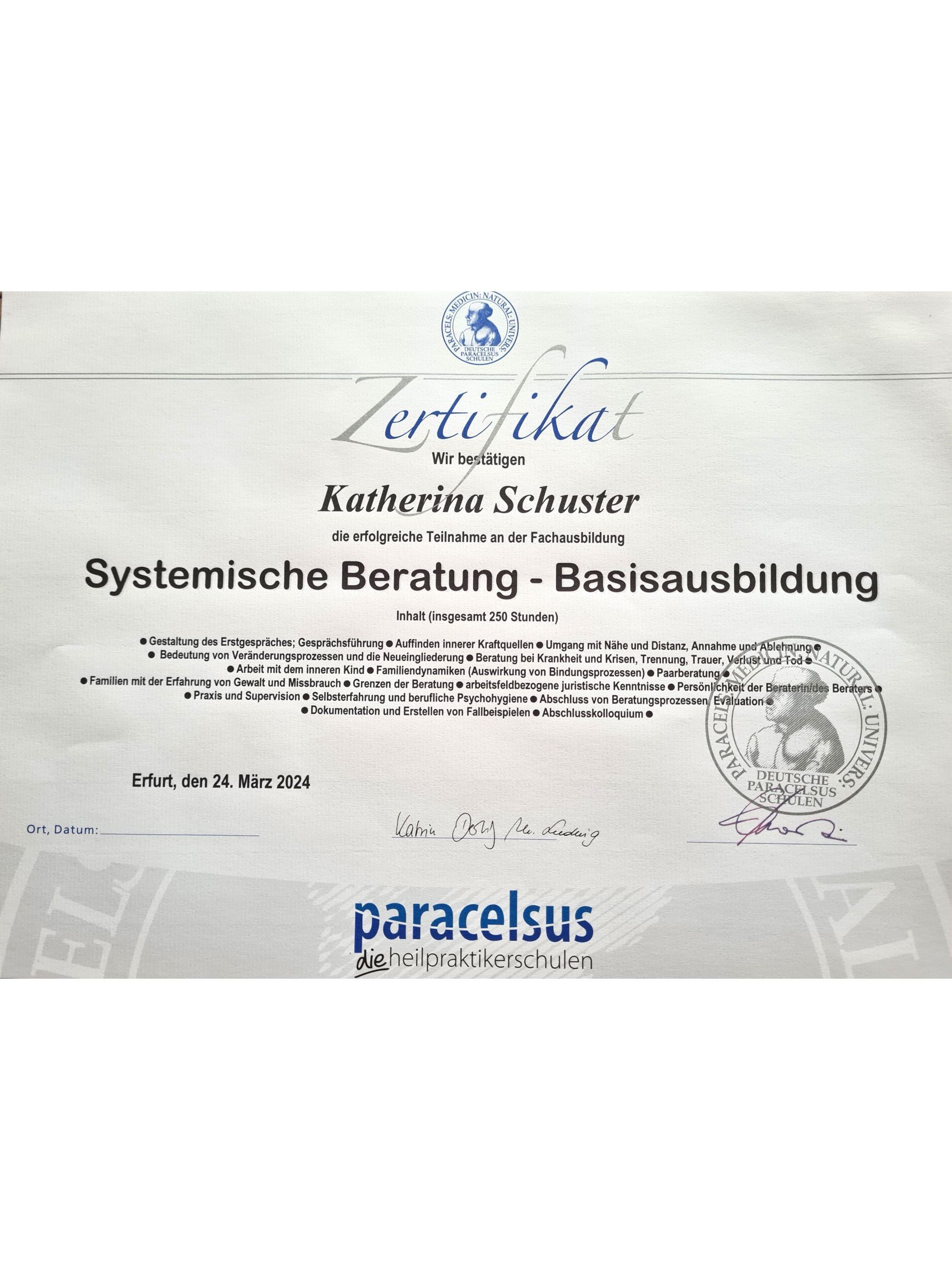 Außerdem habe ich mich zur systemischen Beraterin weiterbilden lassen.